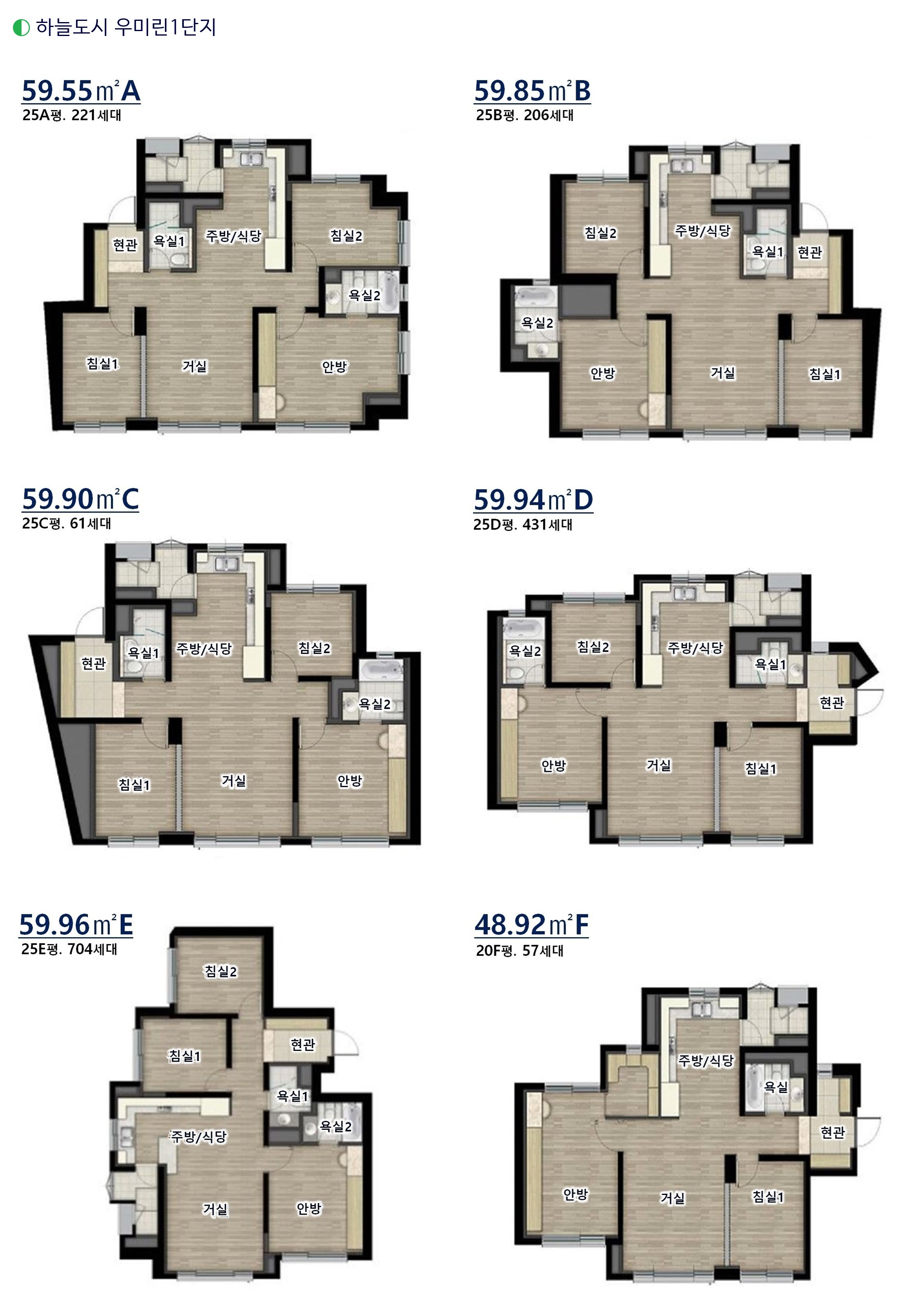 ◐ 하늘도시 우미린1단지 (82/59㎡, 25평)